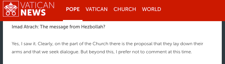 The Pope’s statement, then, was not an attack but a reiteration of a principle that any sovereign country requires: a single, unified authority over weapons and war that is democratically controlled, not with Hezb car bombs and militias ineffective against Israel, but very effective against unarmed Lebanese who don’t bend the knee.